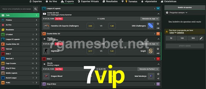 O 7vip oferece uma grande seleção de opções de apostas em e-sports com probabilidades competitivas